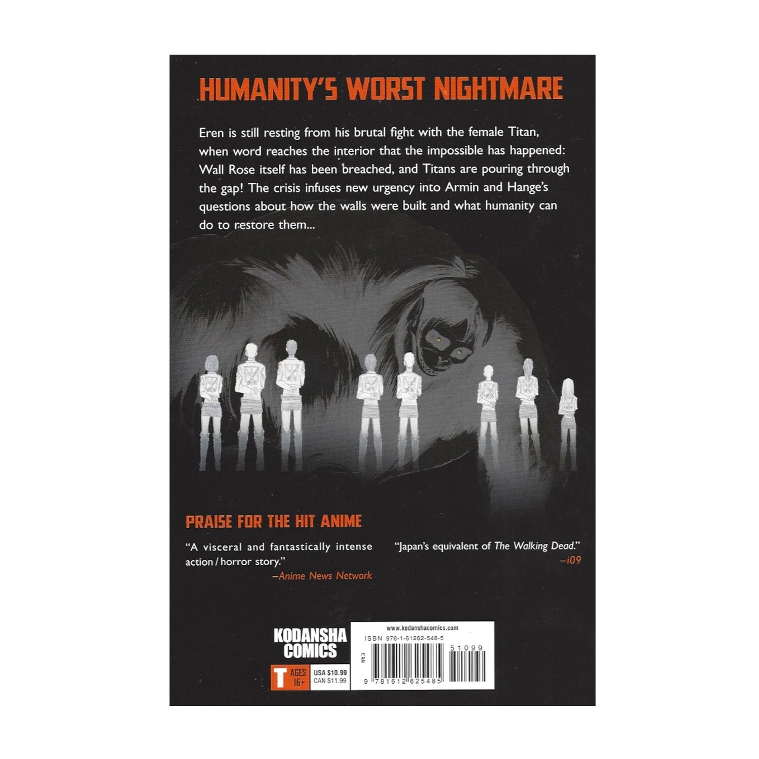 Eren is still resting from his brutal fight with the female Titan, when word reaches the interior that the impossible has happened: Wall Rose itself has been breached, and Titans are pouring through the gap! The emergency casts new urgency over Armin and Hange's questions about how the walls were built, and what humanity can do to restore them...
