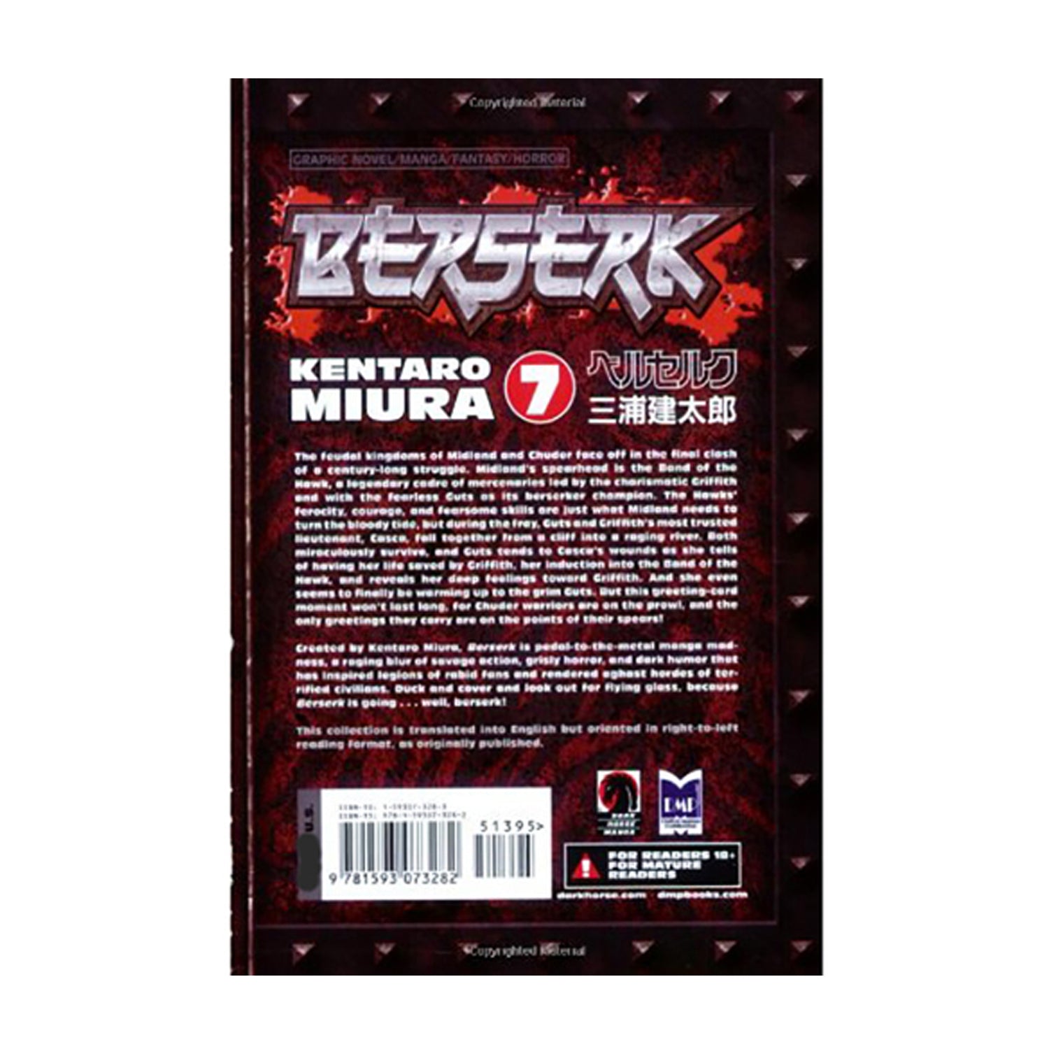 Two feudal kingdoms, Midland and Chuder, battle for supremacy in what will become the final clash in a century-long struggle. Spearheading the Midland forces is the Band of the Hawk, a legendary cadre of elite mercenaries led by the charismatic Griffith and with the fearless Guts as its berserker champion. The Hawks’ ferocity, courage, and fearsome skills – not to mention Guts’ enormous broadsword – are just what Midland needs to turn the bloody tide, but during the fray, Guts and Griffith’s most trusted lieutenant, Casca, fall together from a cliff into a raging river. Miraculously, both barely survive, and Guts tends to Casca’s wounds as she tells of having her life saved by Griffith, her induction into the Band of the Hawk, and her deep feelings toward Griffith. She even seems to finally be warming up to the grim Guts. But this greeting-card moment won’t last long, for Chuder warriors are on the prowl, and the only greetings they carry are on the points of their spears!