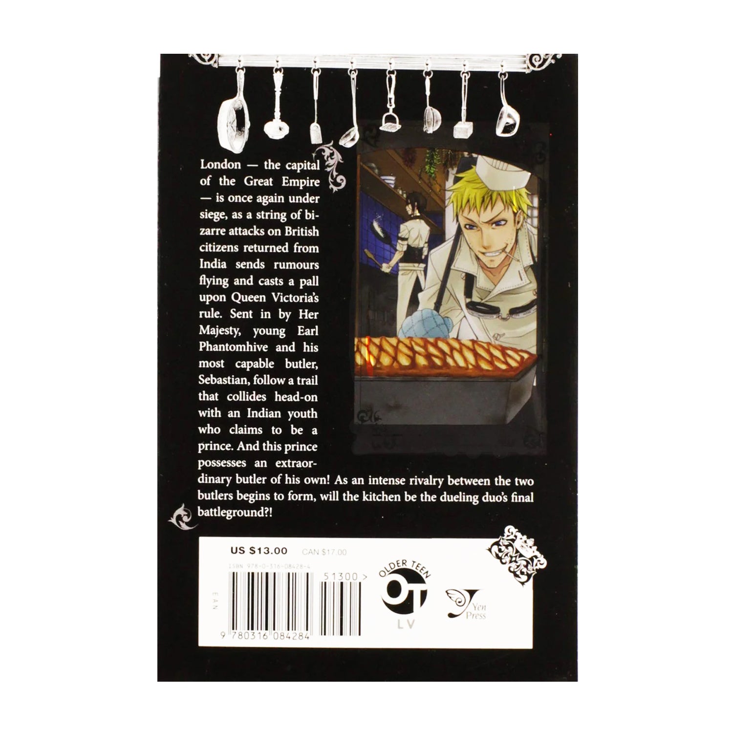 London - the capital of the Great Empire - is once again under siege, as a string of bizarre attacks on British citizens returned from India sends rumours flying and casts a pall upon Queen Victoria's rule. Sent in by Her Majesty, young Earl Phantomhive and his most capable butler, Sebastian, follow a trail that collides head-on with an Indian youth who claims to be a prince. And this prince possesses an extraordinary butler of his own! As an intense rivalry between the two butlers begins to form, will the kitchen be the dueling duo's final battleground?!