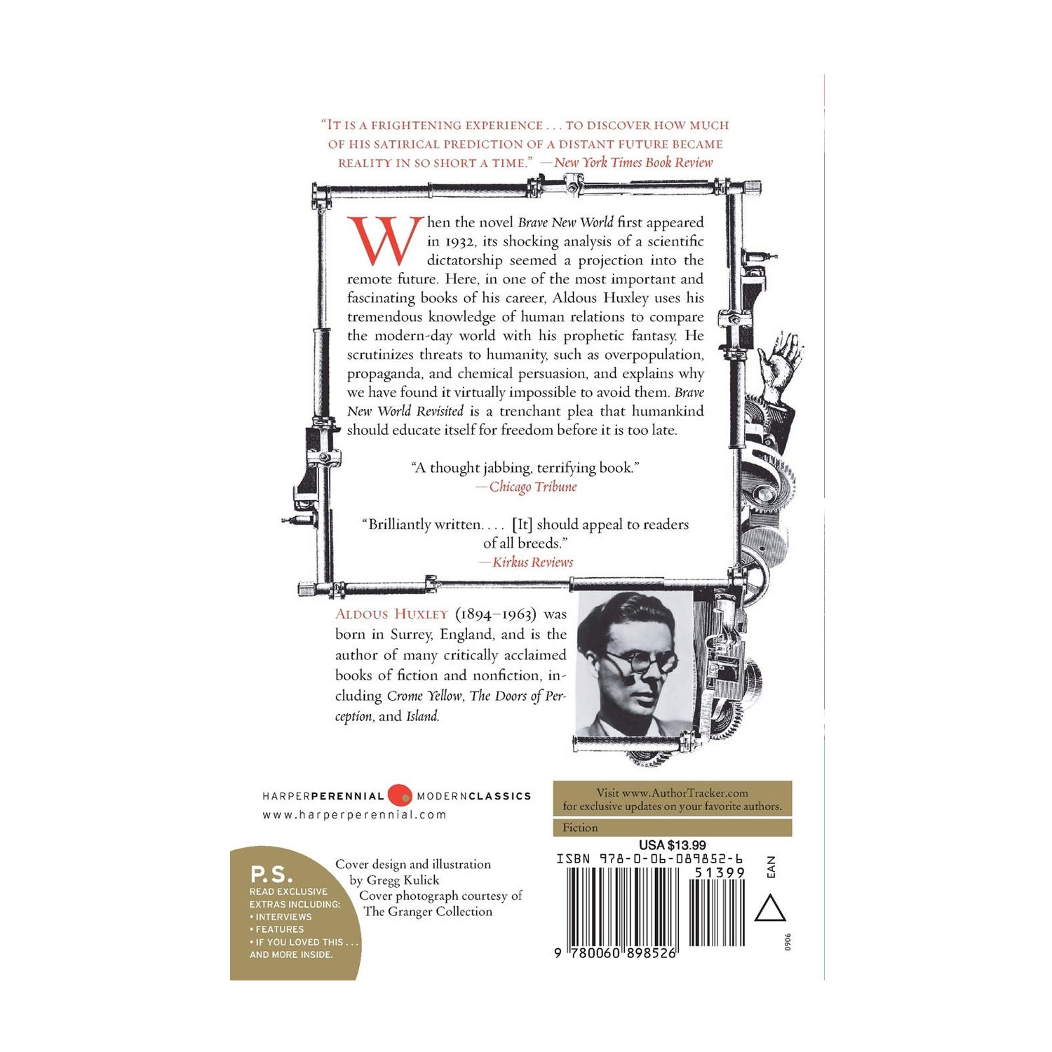 When the novel Brave New World first appeared in 1932, its shocking analysis of a scientific dictatorship seemed a projection into the remote future. Here, in one of the most important and fascinating books of his career, Aldous Huxley uses his tremendous knowledge of human relations to compare the modern-day world with his prophetic fantasy. He scrutinizes threats to humanity, such as overpopulation, propaganda, and chemical persuasion, and explains why we have found it virtually impossible to avoid them. Brave New World Revisited is a trenchant plea that humankind should educate itself for freedom before it is too late. Brave New World Revisted (first published in 1958) is not a reissue or revision of 0060850523 Brave New World. Brave New World is a novel, whereas Brave New World Revisted is a nonfiction exploration of the themes in Brave New World.