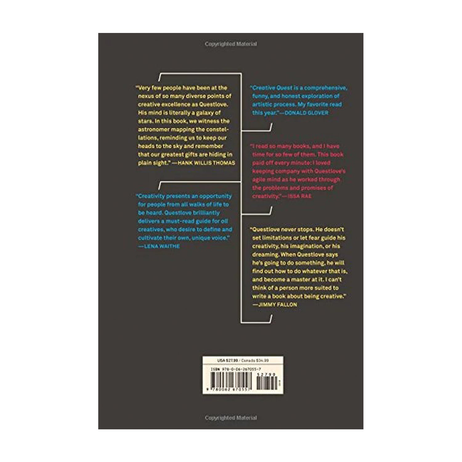 In Creative Quest, Questlove synthesizes all the creative philosophies, lessons, and stories he’s heard from the many creators and collaborators in his life, and reflects on his own experience, to advise readers and fans on how to consider creativity and where to find it. He addresses many topics—what it means to be creative, how to find a mentor and serve as an apprentice, the wisdom of maintaining a creative network, coping with critics and the foibles of success, and the specific pitfalls of contemporary culture—all in the service of guiding admirers who have followed his career and newcomers not yet acquainted with his story.