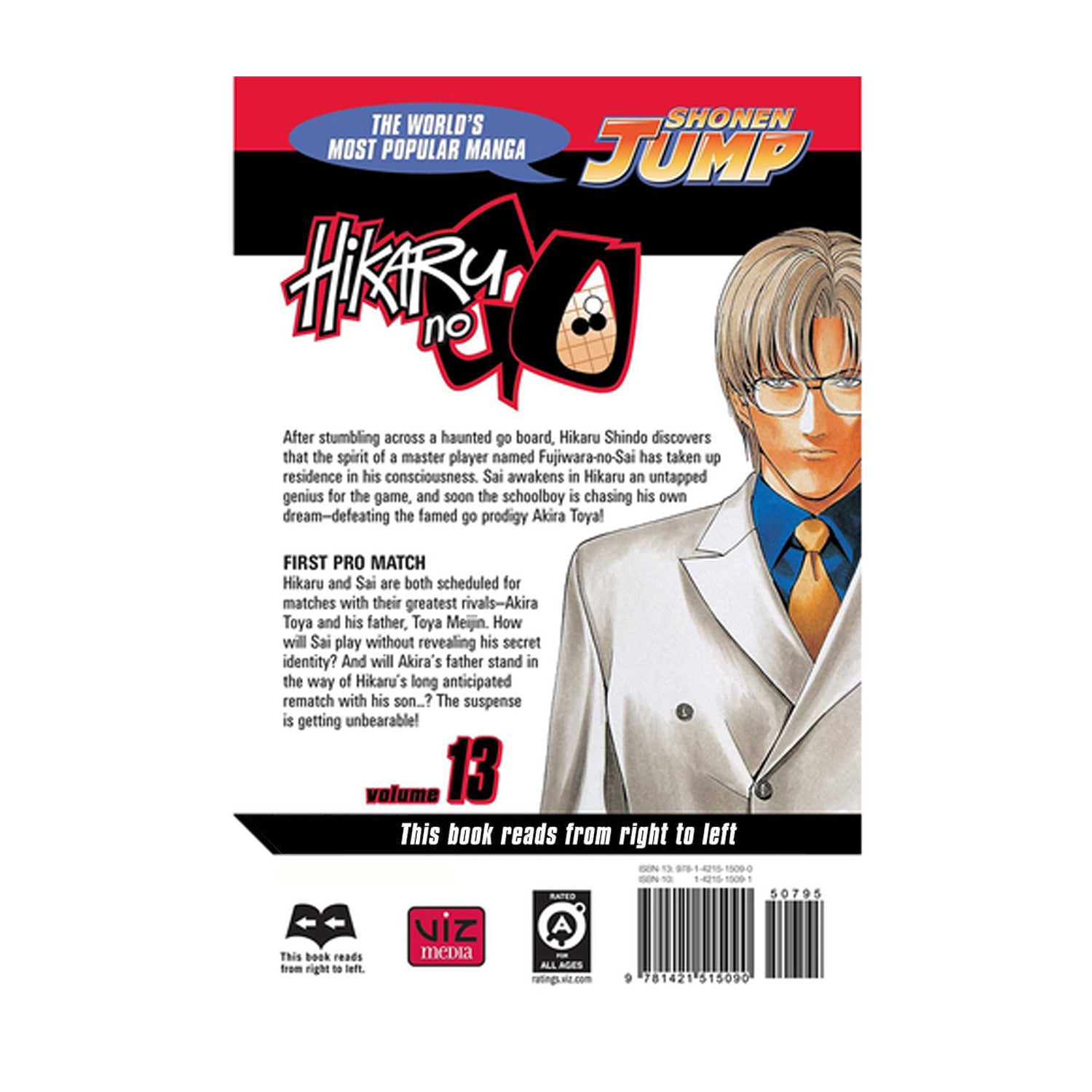 Hikaru and Sai are both scheduled for matches with their greatest rivals--Akira Toya and his father, Toya Meijin. How will Sai play without revealing his secret identity? And will Akira's father stand in the way of Hikaru's long anticipated rematch with his son...? The suspense is getting unbearable!