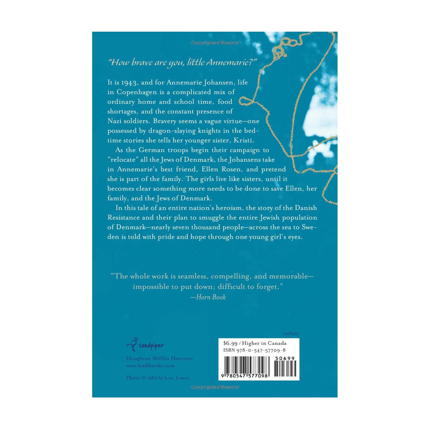 The unforgettable Newbery Medal–winning novel from Lois Lowry. As the German troops begin their campaign to "relocate" all the Jews of Denmark, Annemarie Johansen’s family takes in Annemarie’s best friend, Ellen Rosen, and conceals her as part of the family.