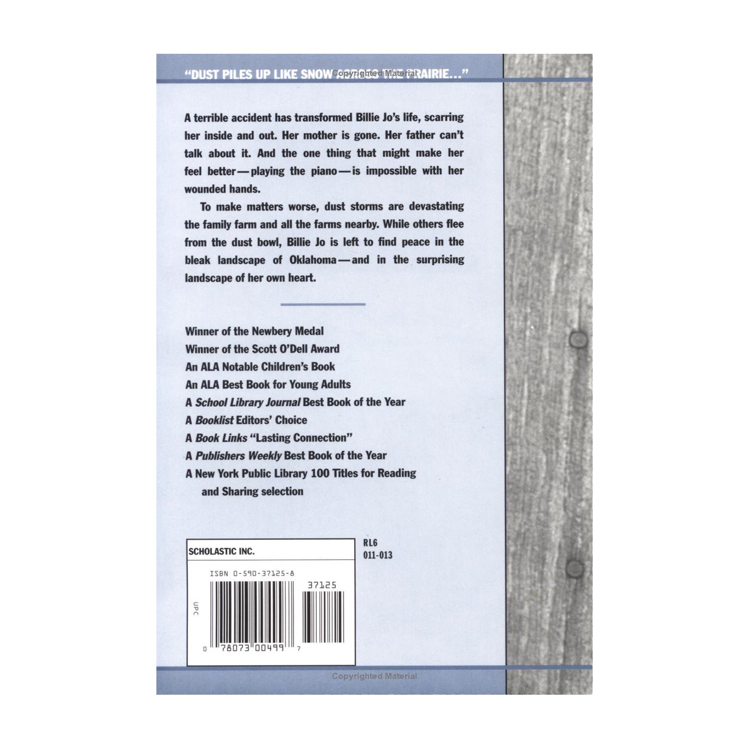 To make matters worse, dust storms are devastating the family farm and all the farms nearby. While others flee from the dust bowl, Billie Jo is left to find peace in the bleak landscape of Oklahoma and in the surprising landscape of her own heart.