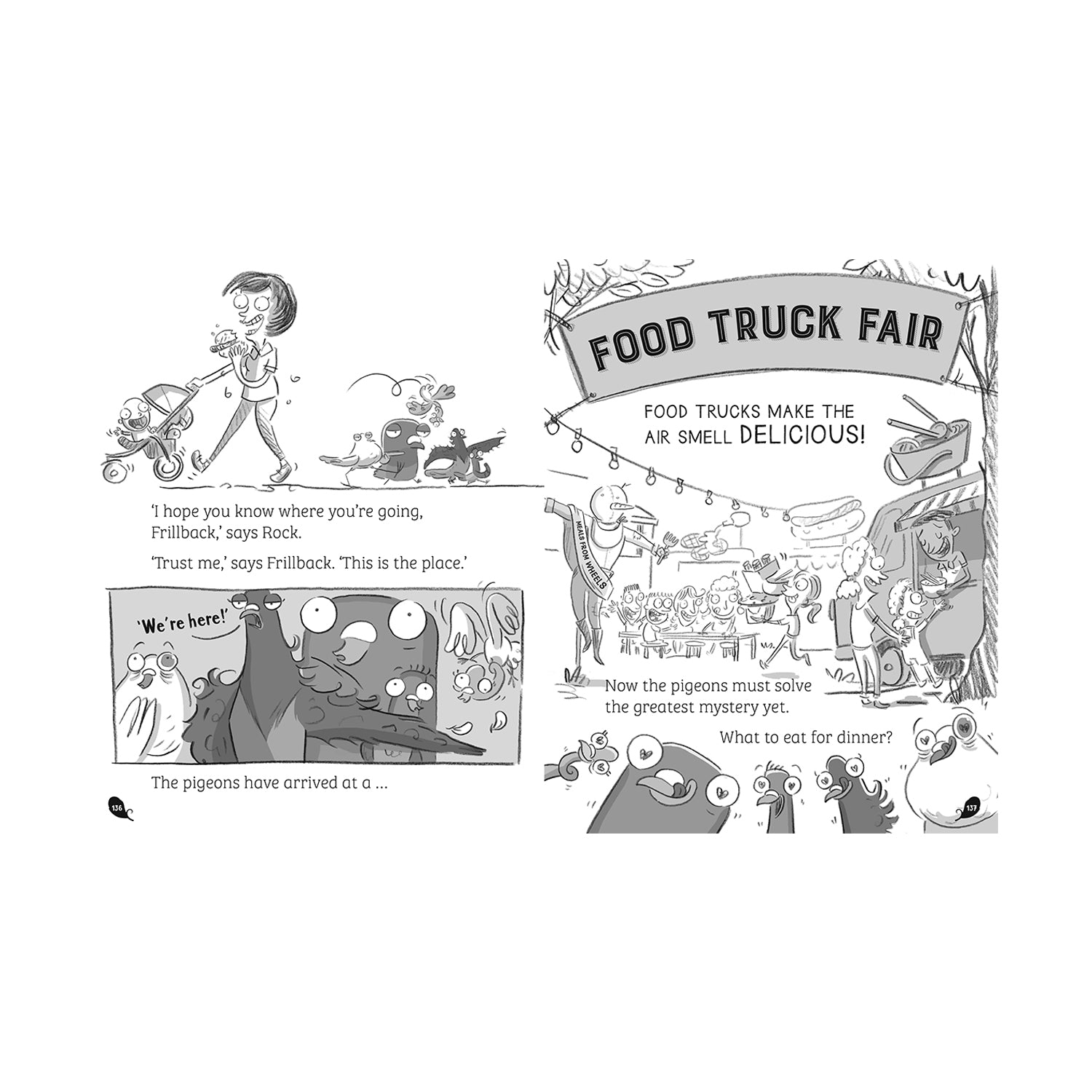 What do REAL PIGEONS do? They fight crime, of course! Wait, what? You didn't know your town is protected by a secret squad of crime-fighting feathered friends? Well, you are about to get schooled. REAL PIGEONS solve mysteries! REAL PIGEONS fight bad guys! And REAL PIGEONS won't stop until your neighborhood is safe and the questions are all answered: Like, why have all the breadcrumbs disappeared? And which food truck smells the best?