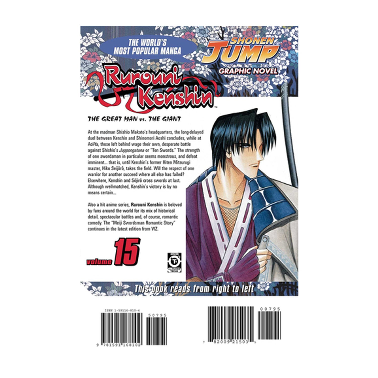 At the madman Shishio Makoto's headquarters, the long-delayed duel between Kenshin and Shinomori Aoshi concludes, while at Aoi-Ya, those left behind wage their own, desperate battle against Shishio's Juppongatana or "Ten Swords." The strength of one swordsman in particular seems monstrous, and defeat imminent...that is, until Kenshin's former Hiten Mitsurugi master, Hiko Seijûrô, takes the field. Will the respect of one warrior for another succeed where all else has failed? Elsewhere, Kenshin and Sôjirô cross swords at last. Although well-matched, Kenshin's victory is by no means certain...
