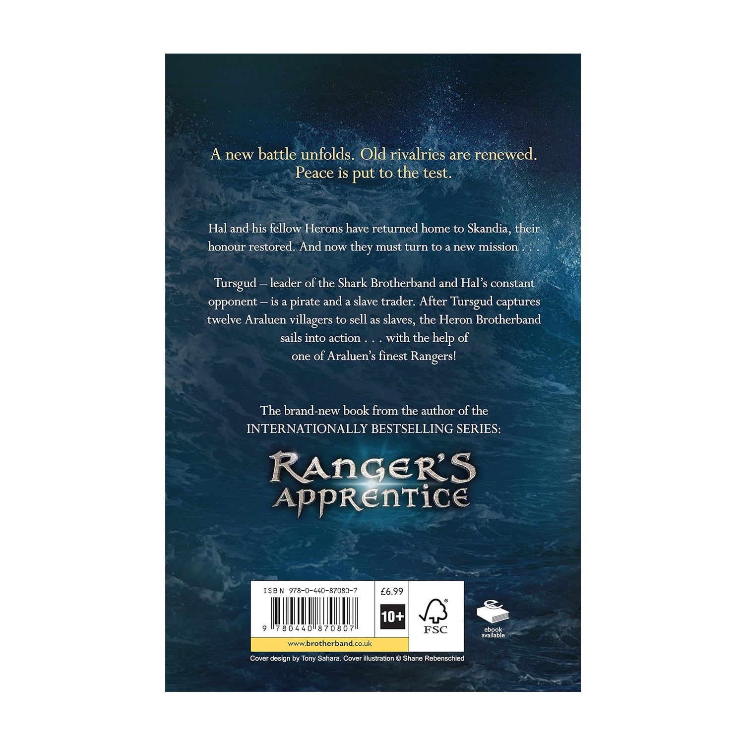 Hal and his fellow Herons have returned home to Skandia after defeating the pirate captain Zavac and reclaiming Skandia's most prized artifact, the Andomal. With their honor restored, the Herons turn to a new tracking down an old rival turned bitter enemy. Tursgud—leader of the Shark Brotherband and Hal's constant opponent—has turned from a bullying youth into a pirate and slave trader. After Tursgud captures twelve Araluen villagers to sell as slaves, the Heron crew sails into action . . . with the help of one of Araluen's finest Rangers!