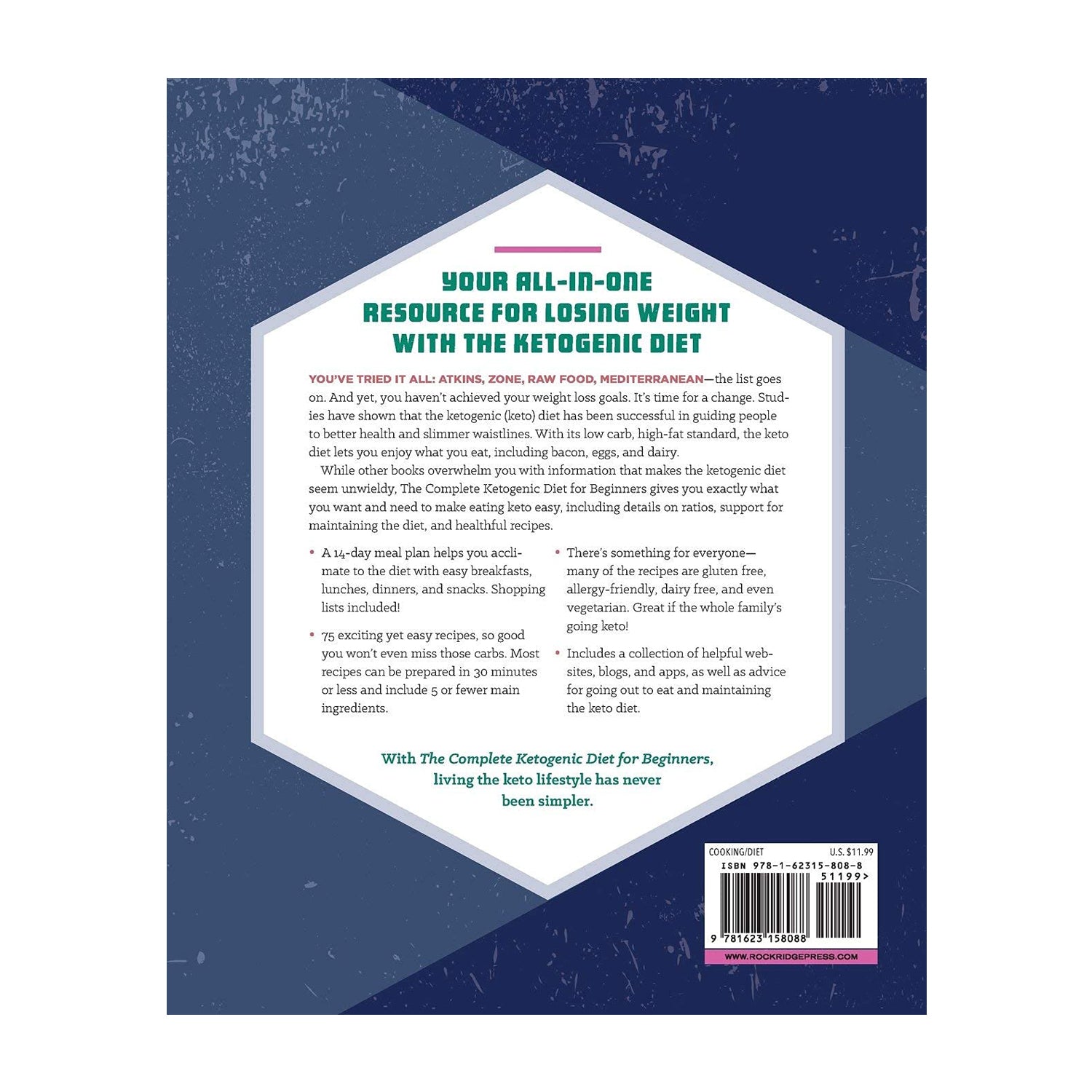 AN EASY START TO KETO FOR Starting to work keto into your life can be overwhelming―so much to learn, so many resources to choose from. The Complete Ketogenic Diet for Beginners makes it easy to start, and stick with, the ketogenic diet. Think of this book as keto for the lazy person- you get exactly what you need for surprisingly simple meal plans, shopping lists, support, and lots of keto-licious recipes, for those concerned about weight loss or those just working on being healthy.
