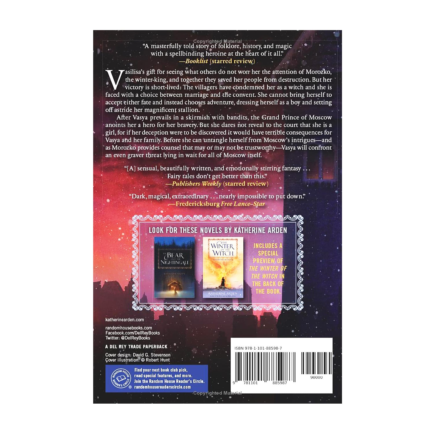 But after she prevails in a skirmish with bandits, everything changes. The Grand Prince of Moscow anoints her a hero for her exploits, and she is reunited with her beloved sister and brother, who are now part of the Grand Prince’s inner circle. She dares not reveal to the court that she is a girl, for if her deception were discovered it would have terrible consequences for herself and her family. Before she can untangle herself from Moscow’s intrigues—and as Frost provides counsel that may or may not be trustworthy—she will also confront an even graver threat lying in wait for all of Moscow itself.
