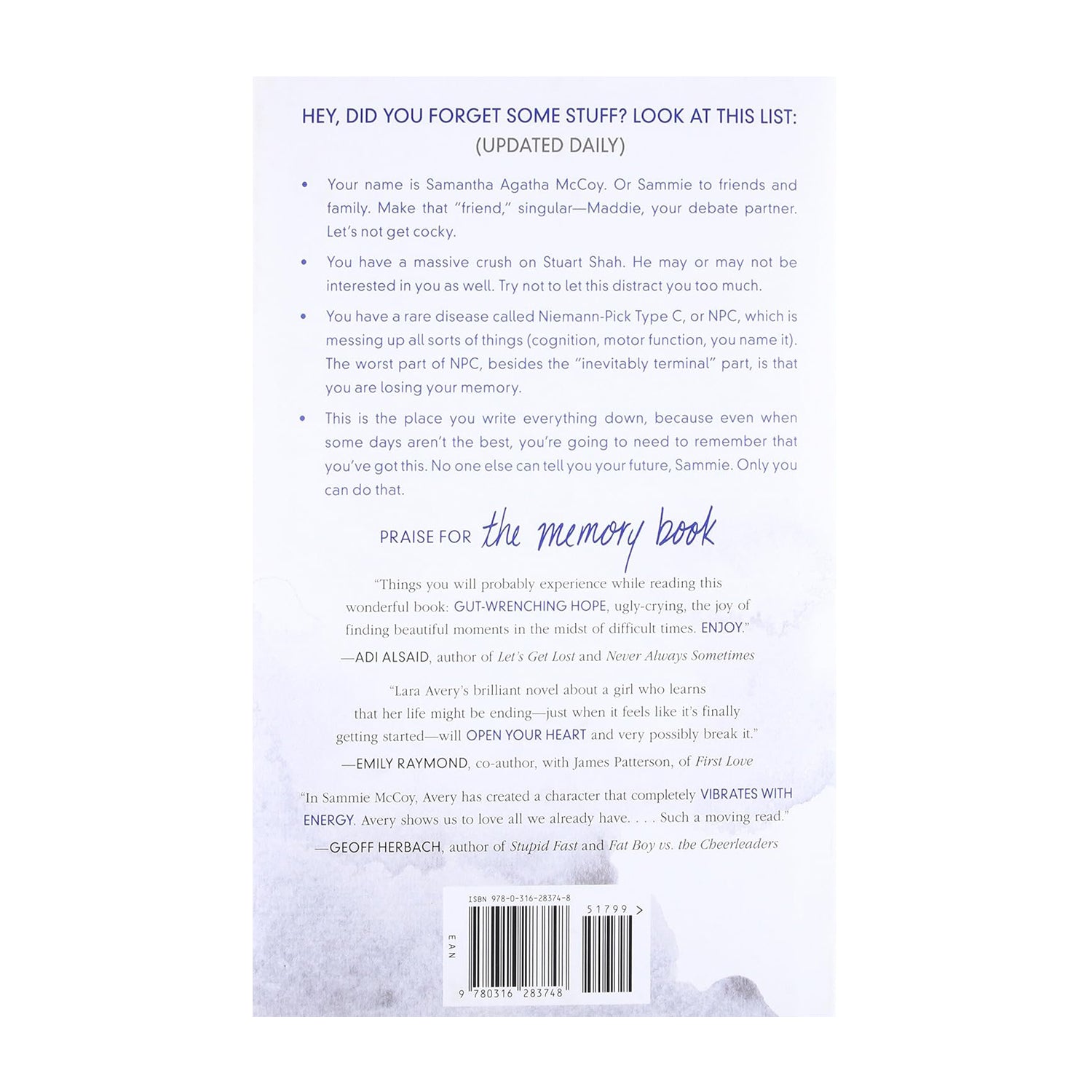 So the Memory Book is born: Sammie's notes to her future self, a document of moments great and small. It's where she'll record every perfect detail of her first date with longtime crush, Stuart--a brilliant young writer who is home for the summer. And where she'll admit how much she's missed her childhood best friend, Cooper, and even take some of the blame for the fight that ended their friendship.